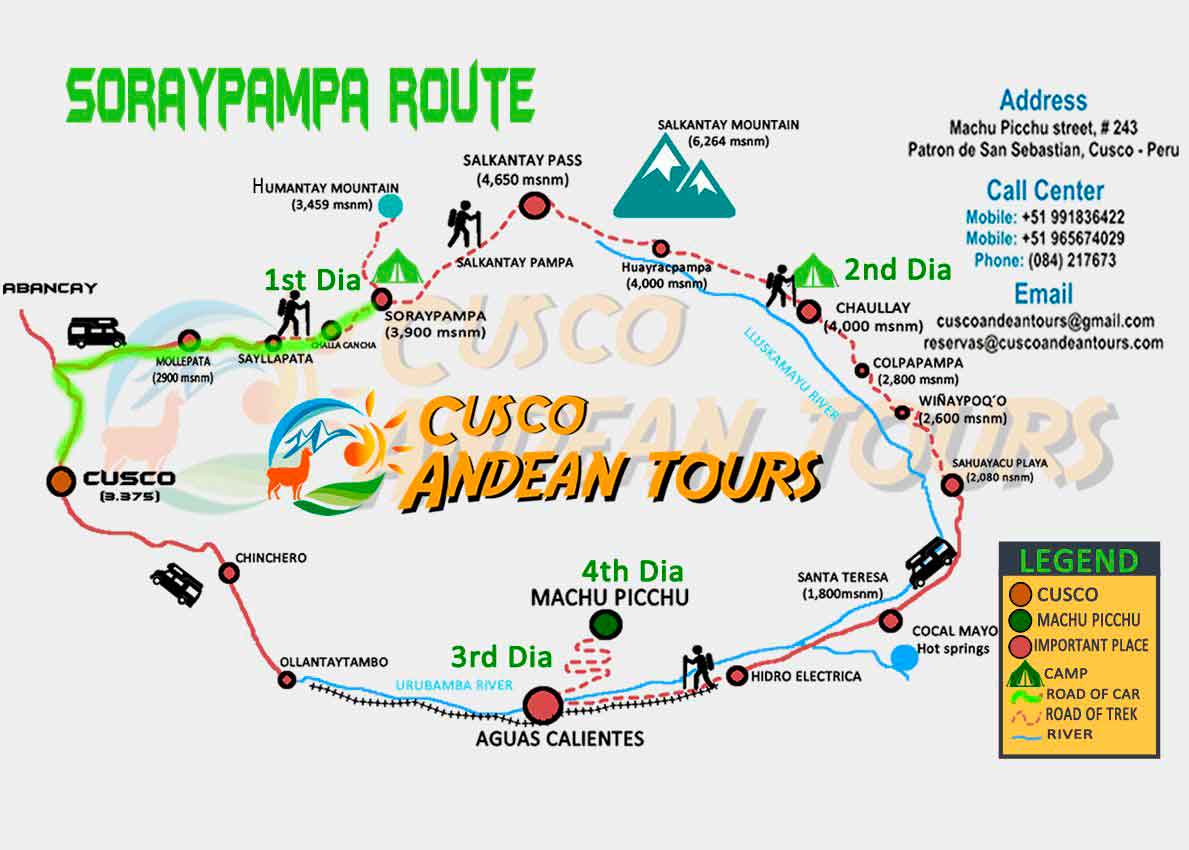 This tour takes us to the origin of the walk in Soraypampa at Salkantay Route to the Inca citadel of Machu Picchu...